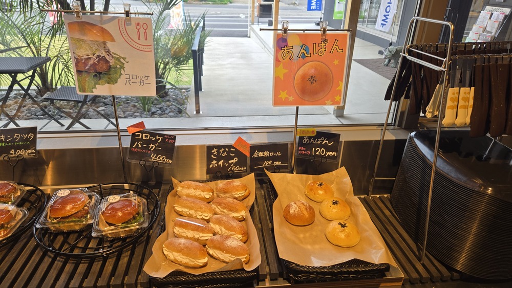 入口付近には定番のあんぱんや、食べ応えのあるハンバーガーなどがあります。