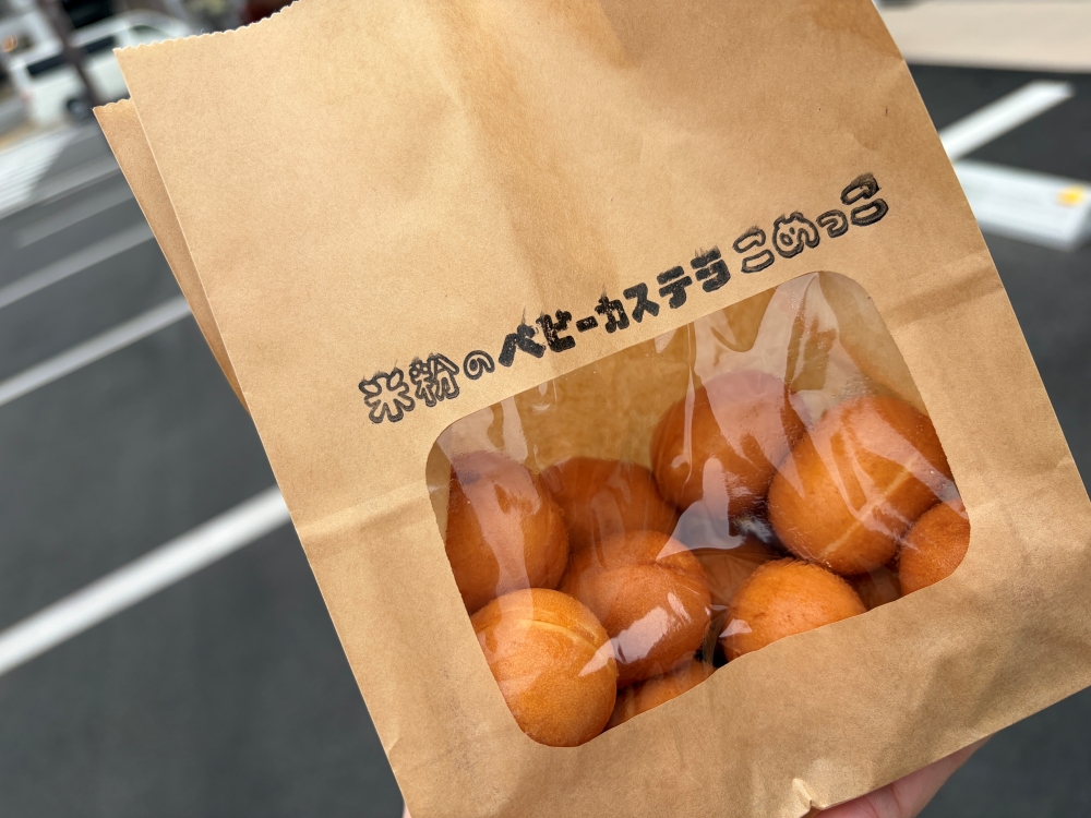 こちらが今回購入した米粉のベビーカステラです。袋から甘い香りが漂って、食べる前からワクワクが止まりません。