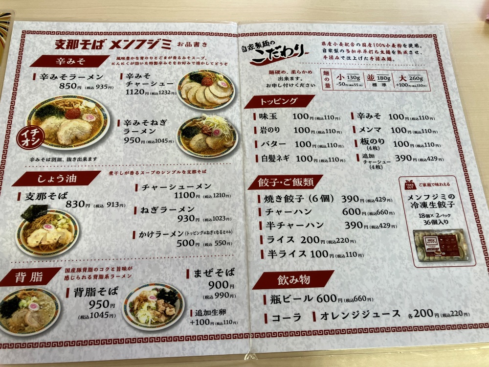 前橋市富士見町にある「支那そば メンフジミ」