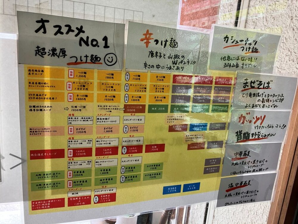 それぞれのメニューには、通常のトッピングの「スタンダード」や、トッピングが追加された「特製」、味玉がトッピングされた「味玉」などがあり、それ以外にもトッピング無しで麺とスープを味わう「素」ラーメンもあります。
