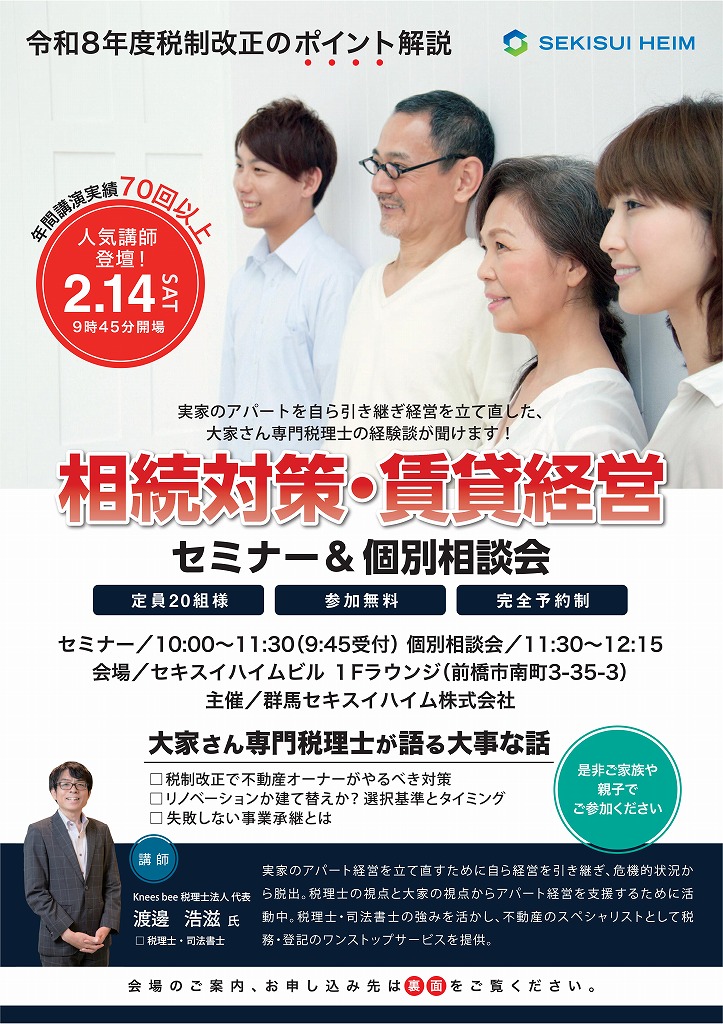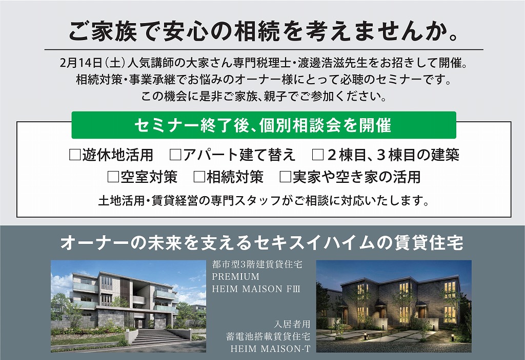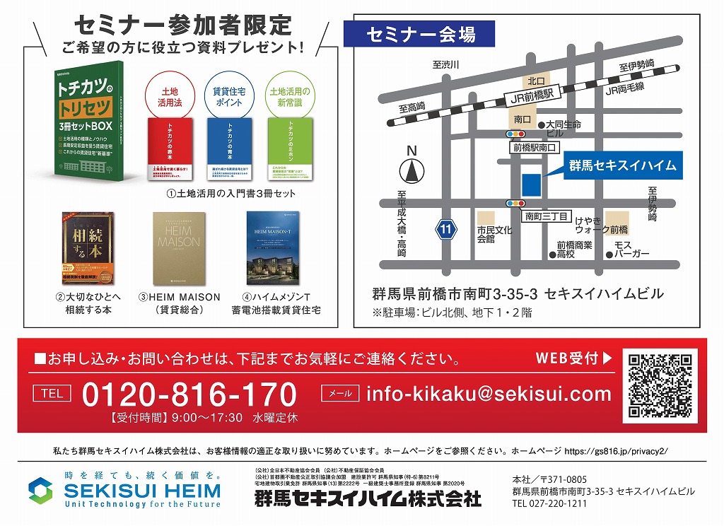完全予約制にてご案内いたします セミナー終了後には個別相談も承っております!
