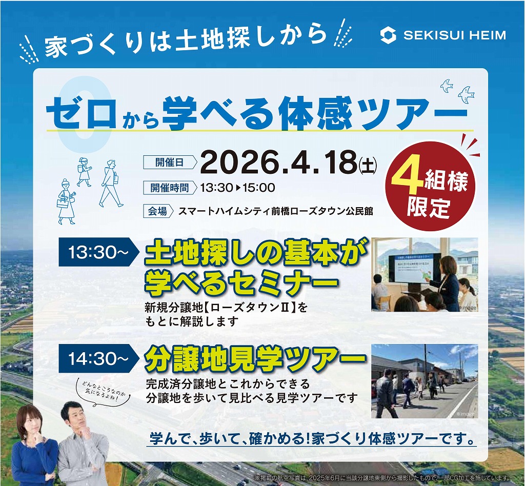 「絆を紡ぐ未来のまち」 スマートハイムシティ前橋ローズタウンⅡ 第1期分譲スタート記念イベント第2弾 ゼロから学べる体感ツアー開催!!