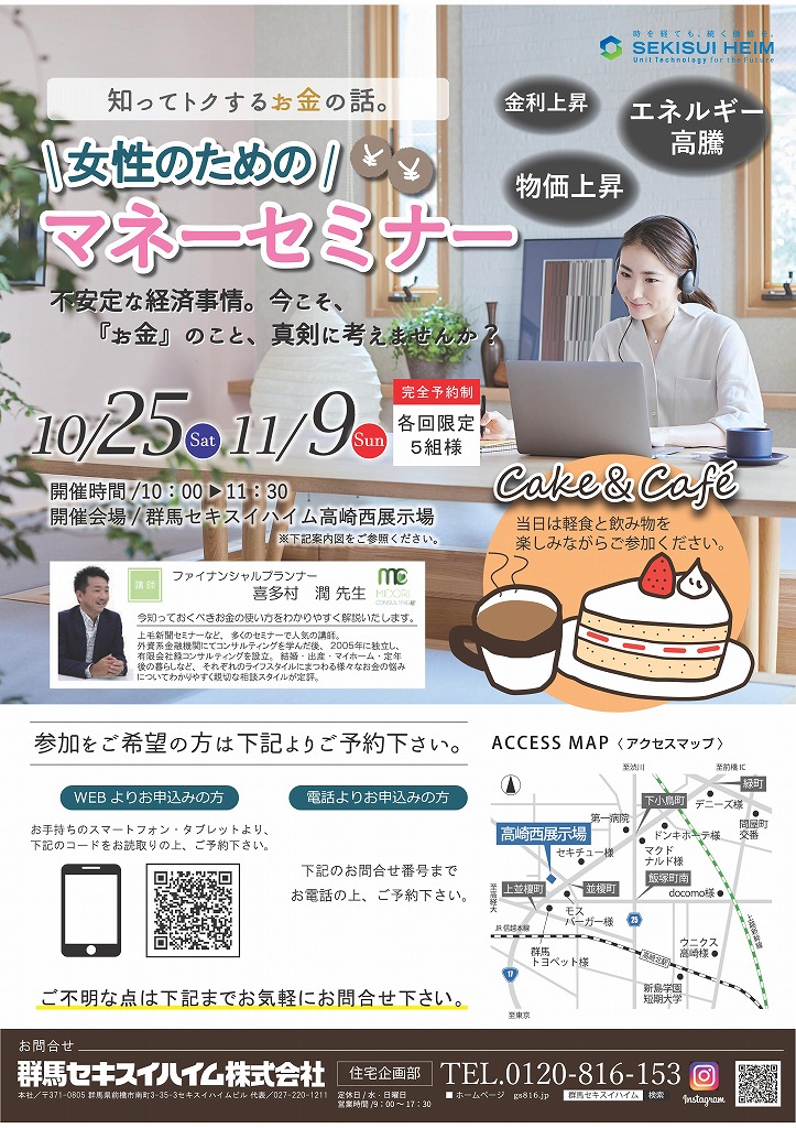完全予約制にてご案内いたします 気になる「お金」について、まずは「知ること」から始めませんか? 軽食と飲み物を用意して、皆さまのご参加をお待ちしております!