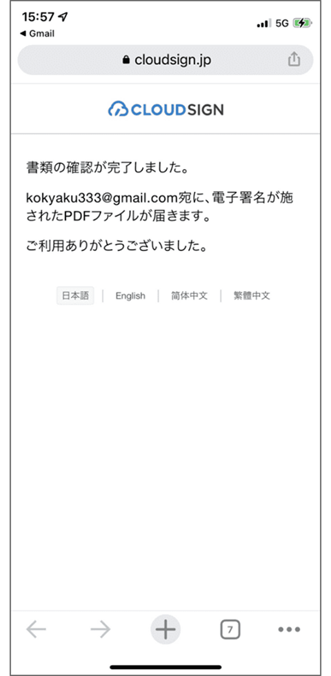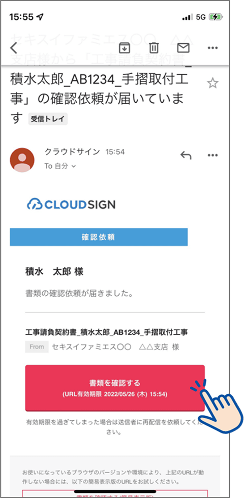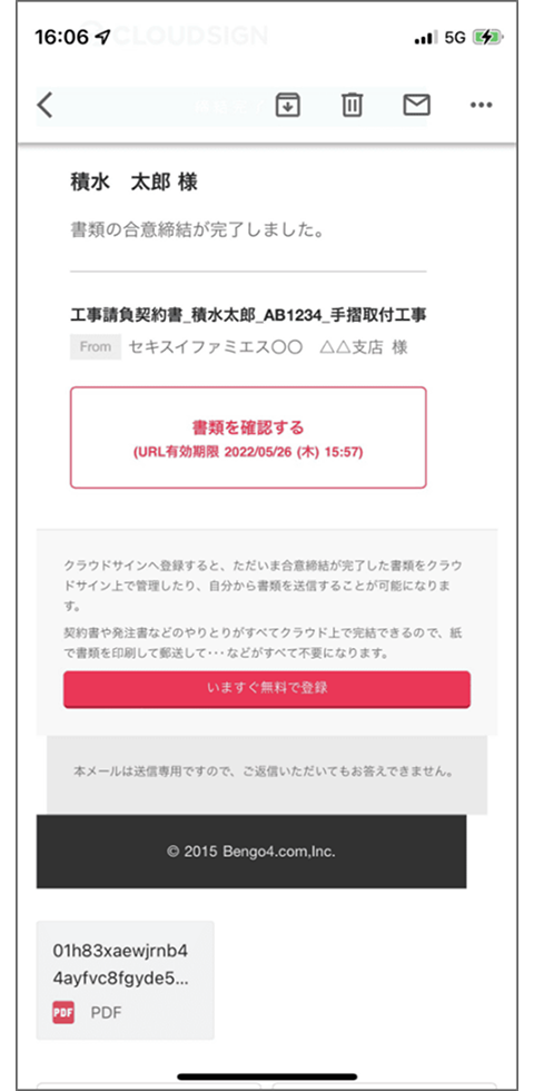 【クラウドサイン 】より、お客様のメールアドレスに送信を行います。