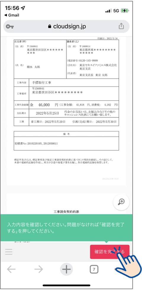 ご契約内容を確認いただき、「確認を完了する」を押してください。