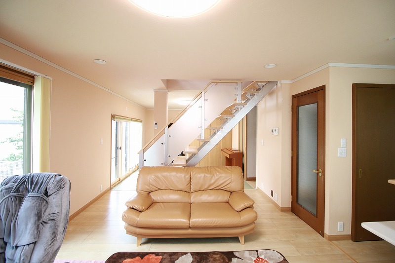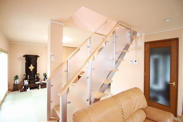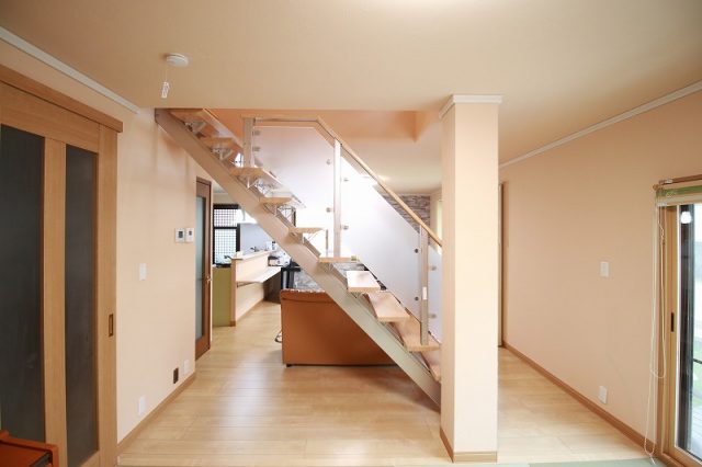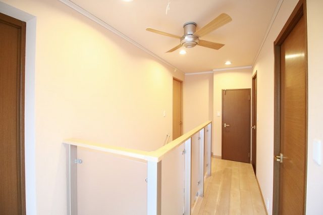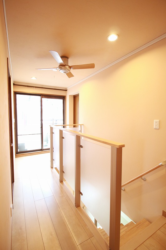 光を通す素材にすることで、ベランダからの自然光が階段を通して1階に降り注ぎます。また、新しく設置したシーリングファンが、空気を循環させることで、快適な温度を保ちます。