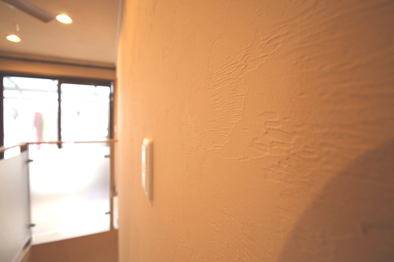 天井や壁には、クロスの代わりに『ガイナ』を塗りました。塗り壁の最大の魅力は日光や照明器具とともに生み出される陰影の美しさ。さらに、断熱性や調湿機能、消臭機能などを持ち合わせたガイナは、お部屋の空気も快適にしてくれます。