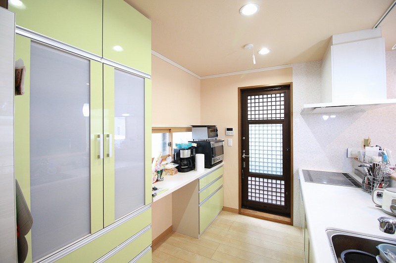 吊戸収納をなくすことで、明るいキッチンへ生まれ変わりました。オープンキッチンなので、お料理中でもリビングにいるご家族とのコミュニケーションが広がります。