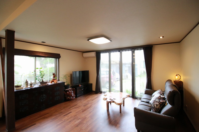 古民家のような家にしたかったという奥様。リフォームに合わせて探し求めた家具とインテリアがマッチして、落ち着きのある大人の空間に生まれ変わりました。外から中が見えにくいカーテンのおかげで、明るさと開放感を感じながら、プライバシーも守られます。