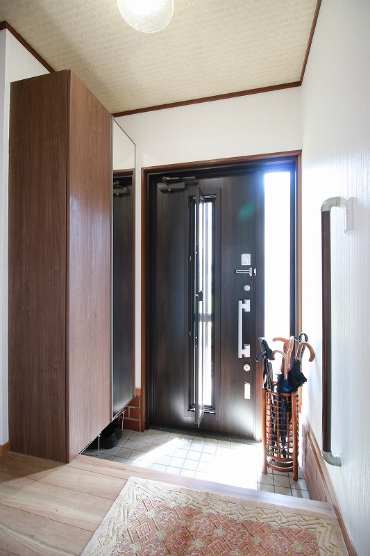 トールサイズの玄関収納のおかげで、玄関がスッキリと片付きました!また、施錠した状態で通風できる玄関ドアのおかげで、においがこもらなくなりました。