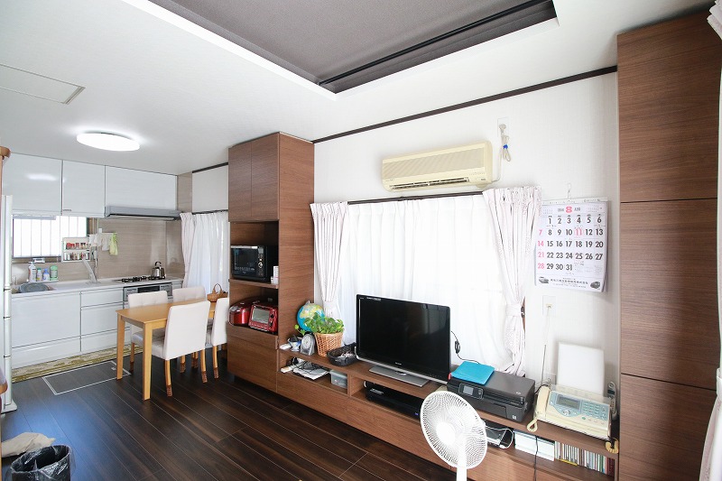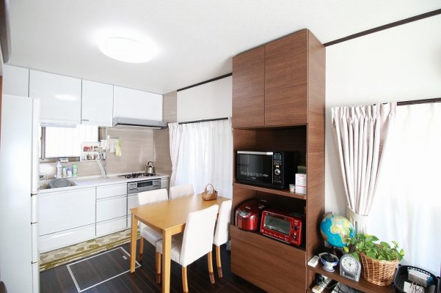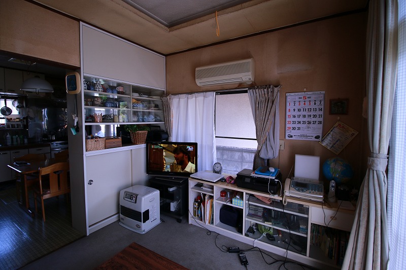 キッチンとリビングの間は、食器棚で区切られていました。