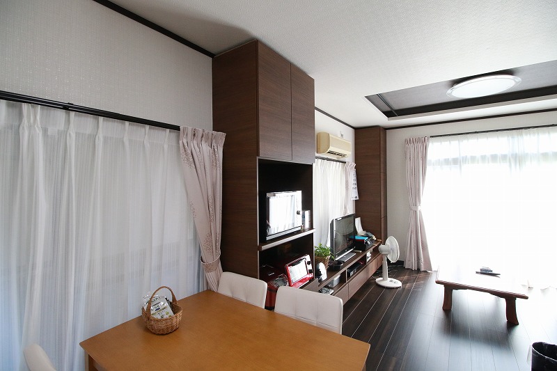 一体空間になったことで、ダイニングにいてもテレビが見られるようになり、くつろげる空間が増えたそうです。