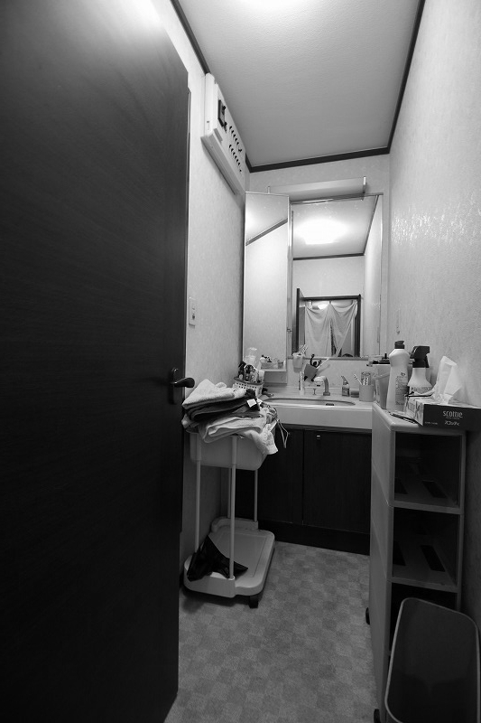 間取りを変更することで十分な広さの洗面所になりました。収納は下着やタオルをまとめてしまえる大容量。洗濯機横の物干しは、洗う→干すの家事負担を最小限にしてくれます。
