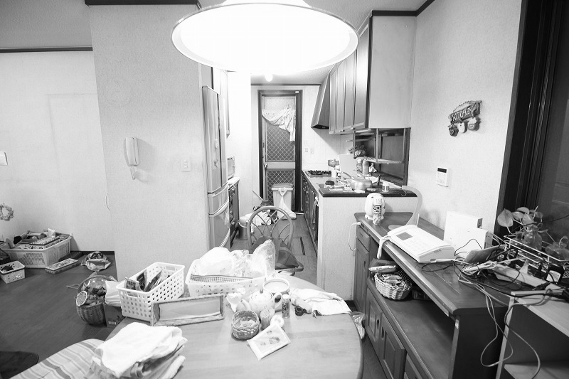 壁の向こうにキッチンが。キッチンとリビングが壁で仕切られていたので、家族とのコミュニケーションが取りにくい配置でした
