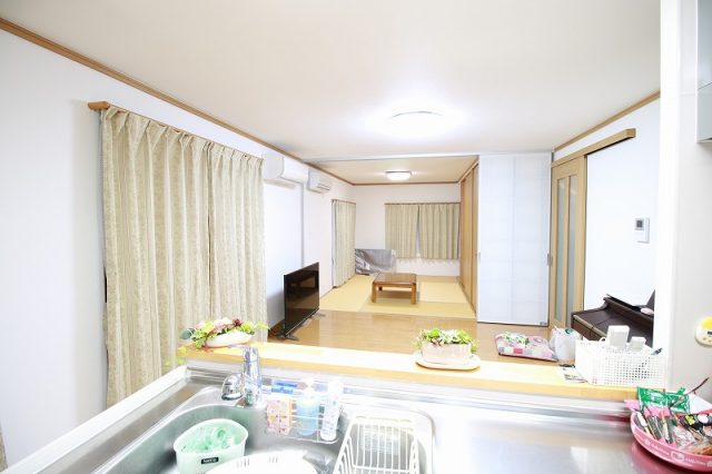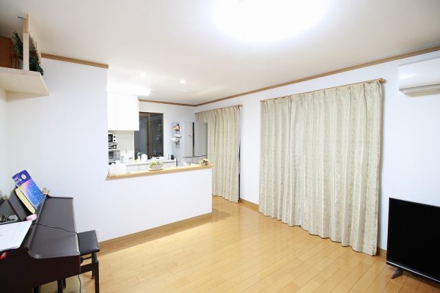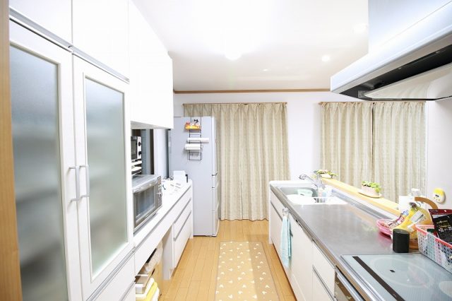 キッチンがリビングと対面しているため、家族とコミュニケーションをとりながらお料理をすることができます。また作業中の手元が適度に隠れるのも嬉しいですね。