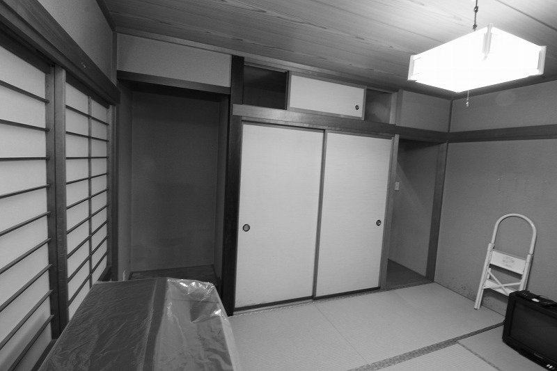 使われなくなっていた和室。写真右手の壁をなくすと→