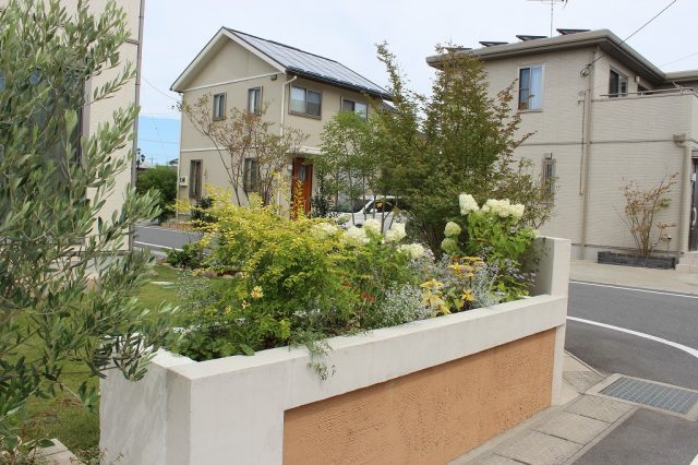 様々な高さの樹木をバランスよく配置することで、通りからの目線が遮られます。背の高い花壇は、お庭からはもちろん、通りからも楽しめます!