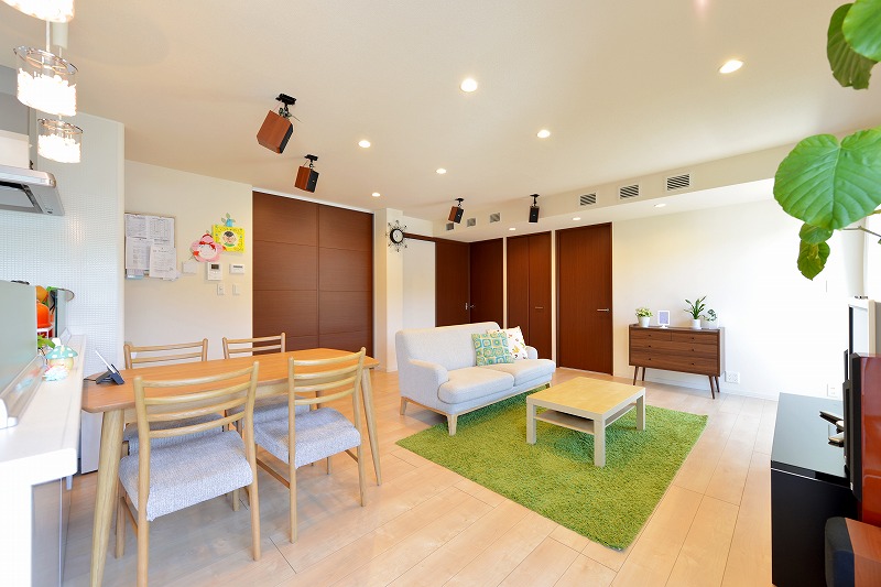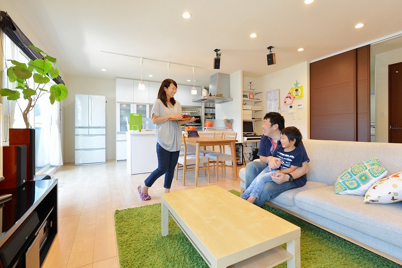 奥様のこだわりは「間取り」。無駄な柱を省く工法により、開放的なLDKを実現しました。