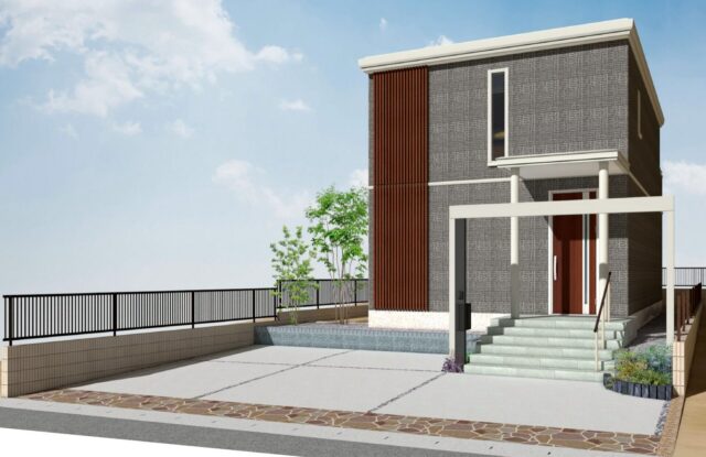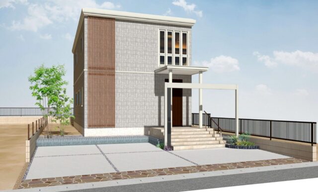 街の統一感を生み出す門柱デザイン。統一された住まいの顔が、調和のとれた街並みをつくります。(イメージ)