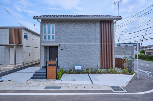 街の統一感を生み出す門柱デザイン。統一された住まいの顔が、調和のとれた街並みをつくります。(イメージ)